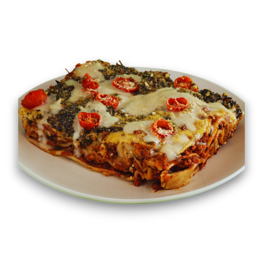 Curgete, tomate, cebola, queijo, bechamel, massa de lasanha.