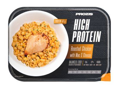 Para acompanhar o ritmo exigente e as rotinas aceleradas da atualidade, a Prozis desenvolveu uma gama de refeições que coloca a proteína em primeiro lugar. Saboreia este Peito de Frango Assado com Mac&Cheese, uma combinação rica em proteína de massa e frango assado com queijo derretido delicioso. A típica refeição reconfortante, agora pronta em apenas 7 minutos. Desenvolvido por nutricionistas e feito apenas com os melhores ingredientes para uma dieta equilibrada que corresponde às tuas exigências diárias.